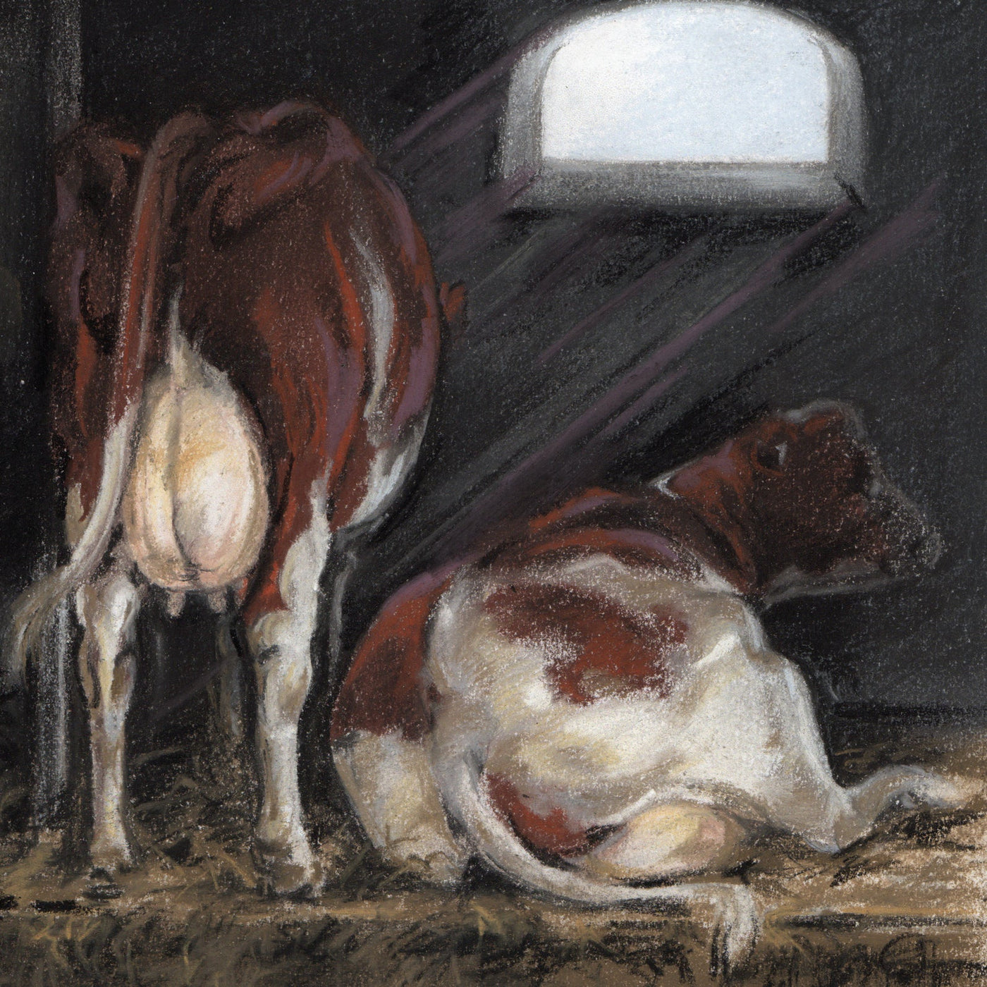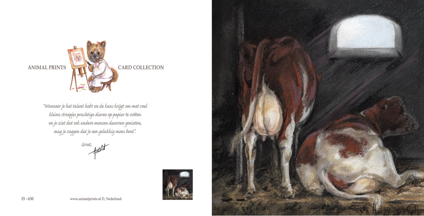 Vierkante kaart - Koeien op stal. Even bijkomen van het harde werken..