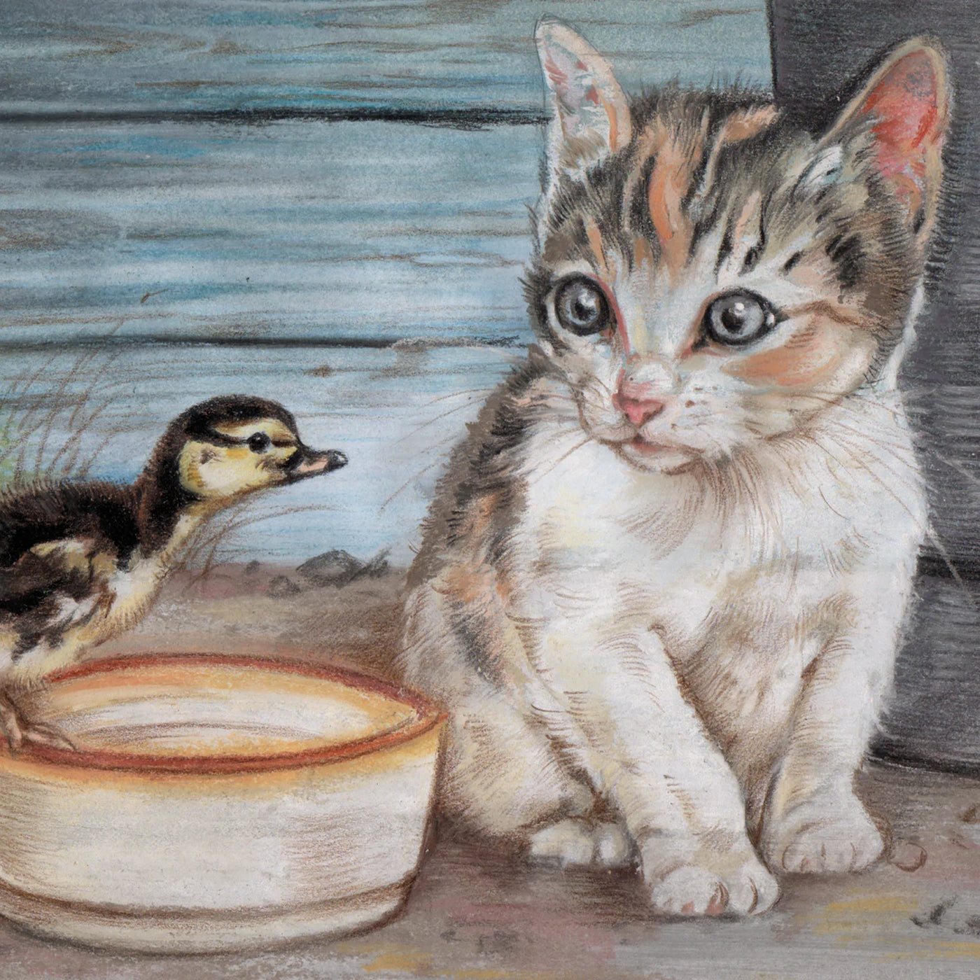 Quadratische Karte - Katze & Küken - Freunde fürs Leben