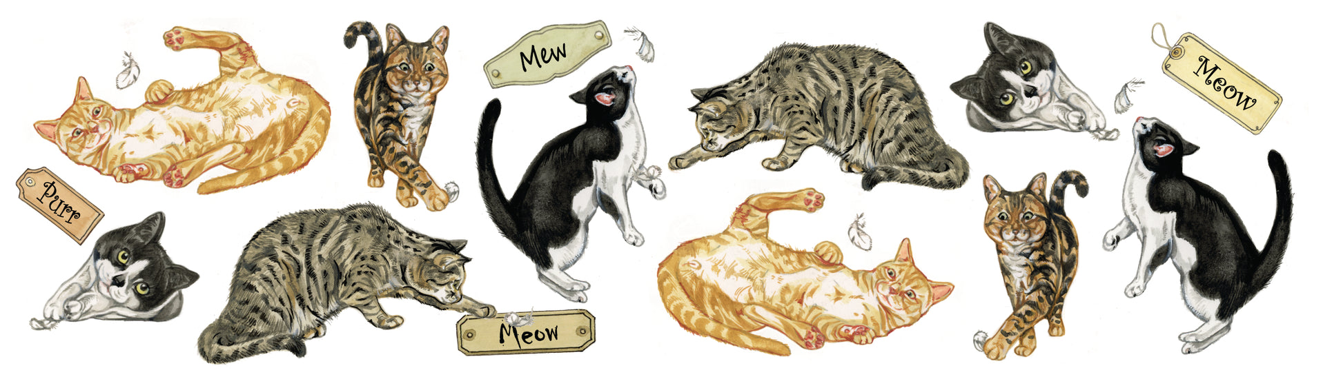 Fröhliche Tasse mit vielen kleinen Katzenabbildungen