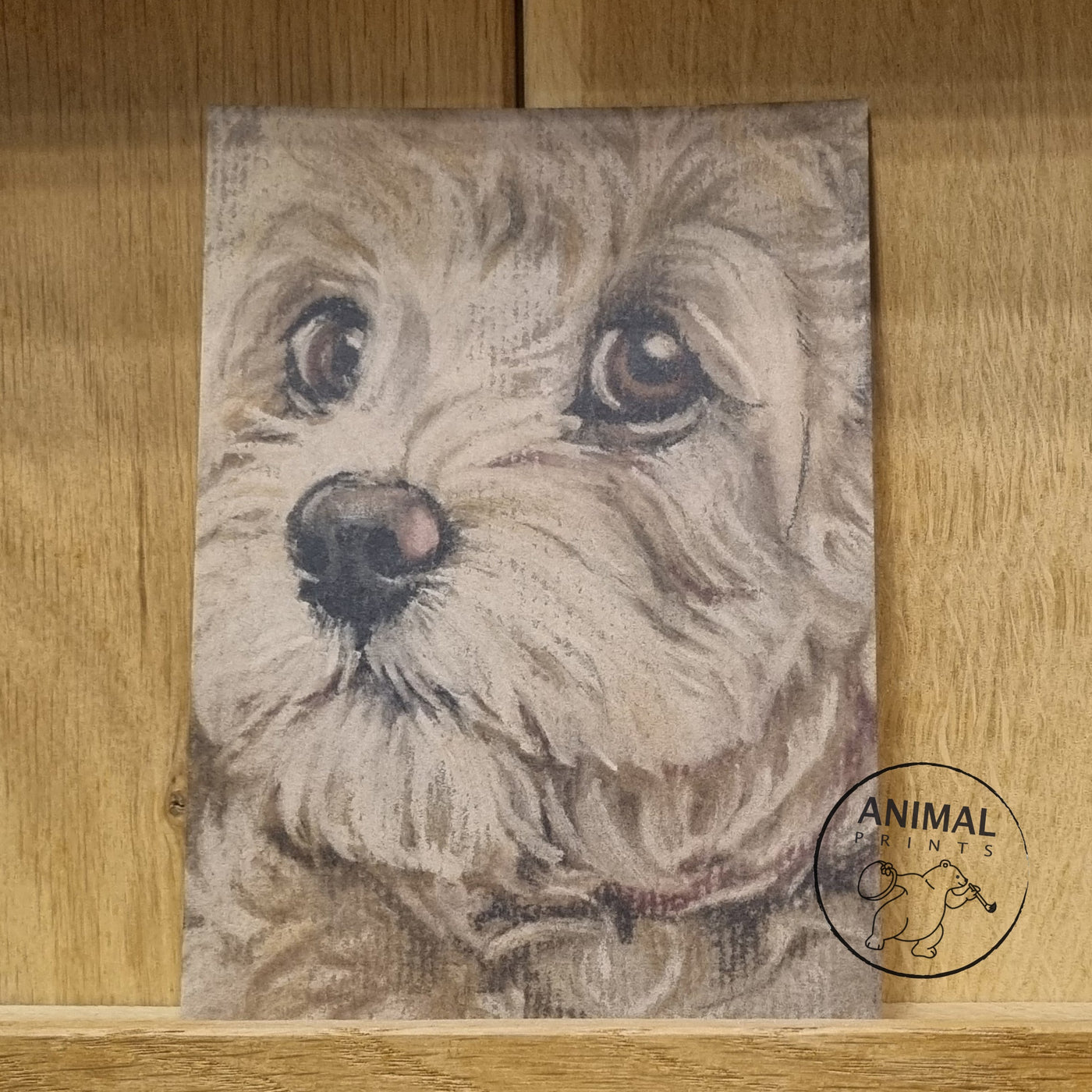 Kraftkaart A6 formaat (ansichtkaart) - kaart nummer 14 - Labradoodle (per 5 stuks)