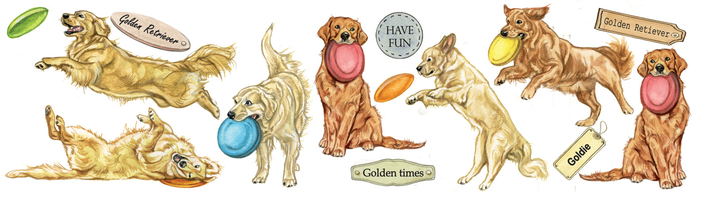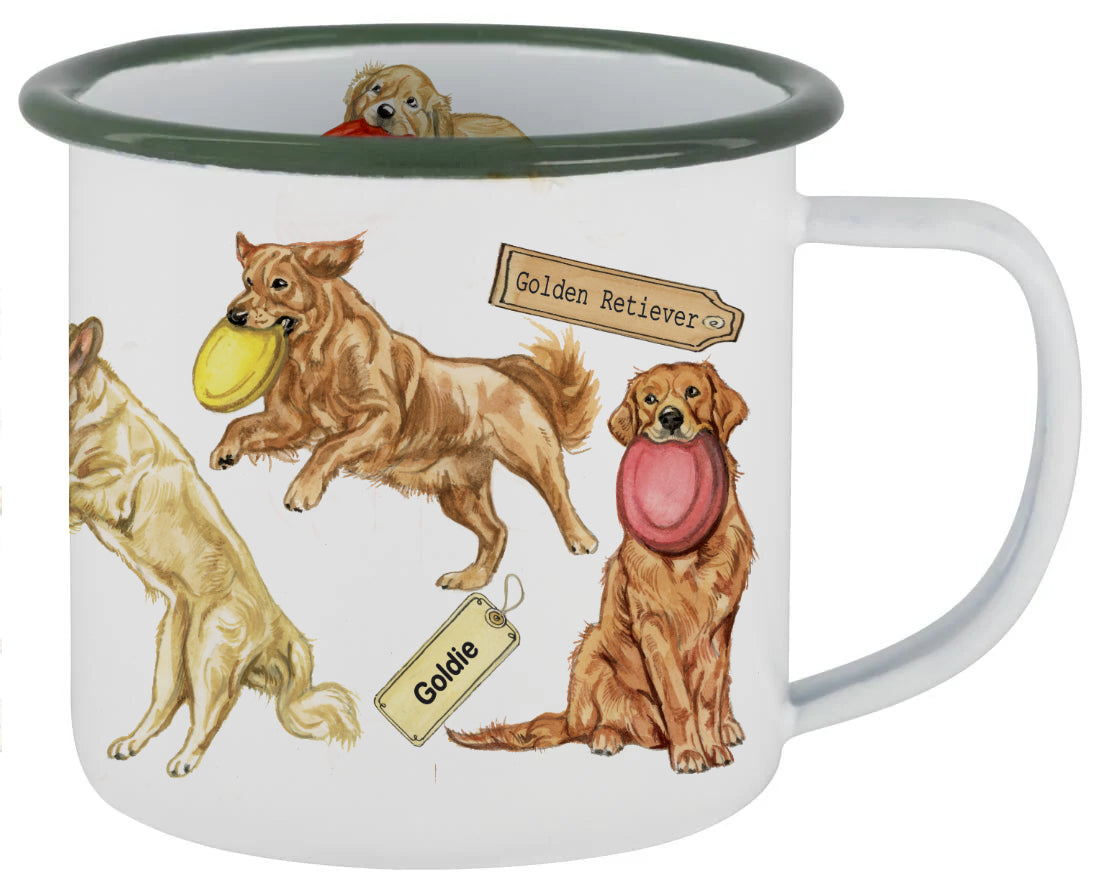 Vrolijke mok met vele kleine illustraties van Golden Retriever