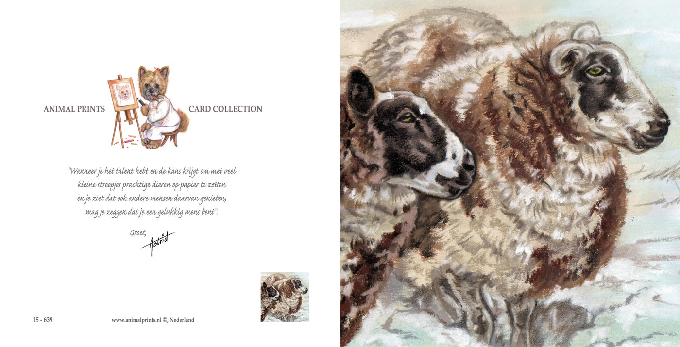 Exclusieve wenskaart met schitterende illustratie door Astrid Halsema Formaat 13,5 x 13,5 cm, uitgeklapt 27 x 13,5 cm Per stuk verkrijgbaar Inclusief enveloppe Papiersoort: Sulfaatkarton, 330 gr/m2