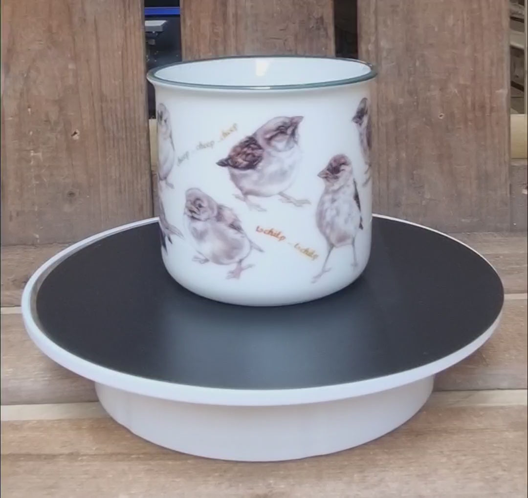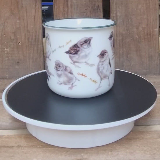 Deze mok heeft het uiterlijke van een emaille/enamel mok, maar is van aardewerk. Hierdoor is er beter uit te drinken en geen kans op "aangebrande" lippen tijdens het drinken.