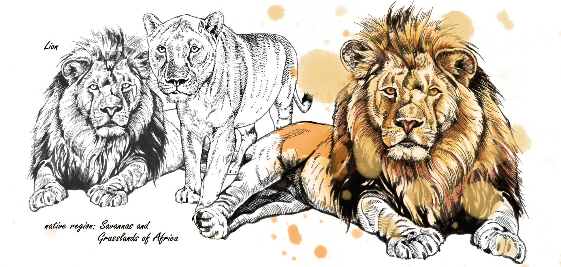 Unieke mok met prachtige wildlife illustratie van de Leeuw.