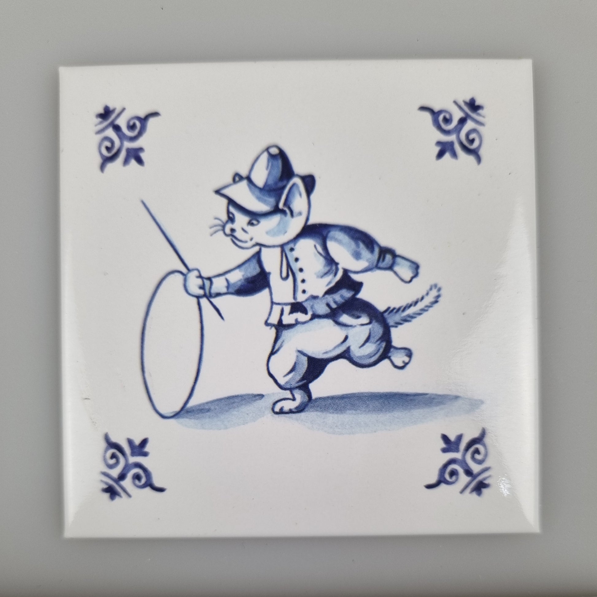 Kleurrijke koelkastmagneet met Kat (delfsblauw) - Hoepelen.