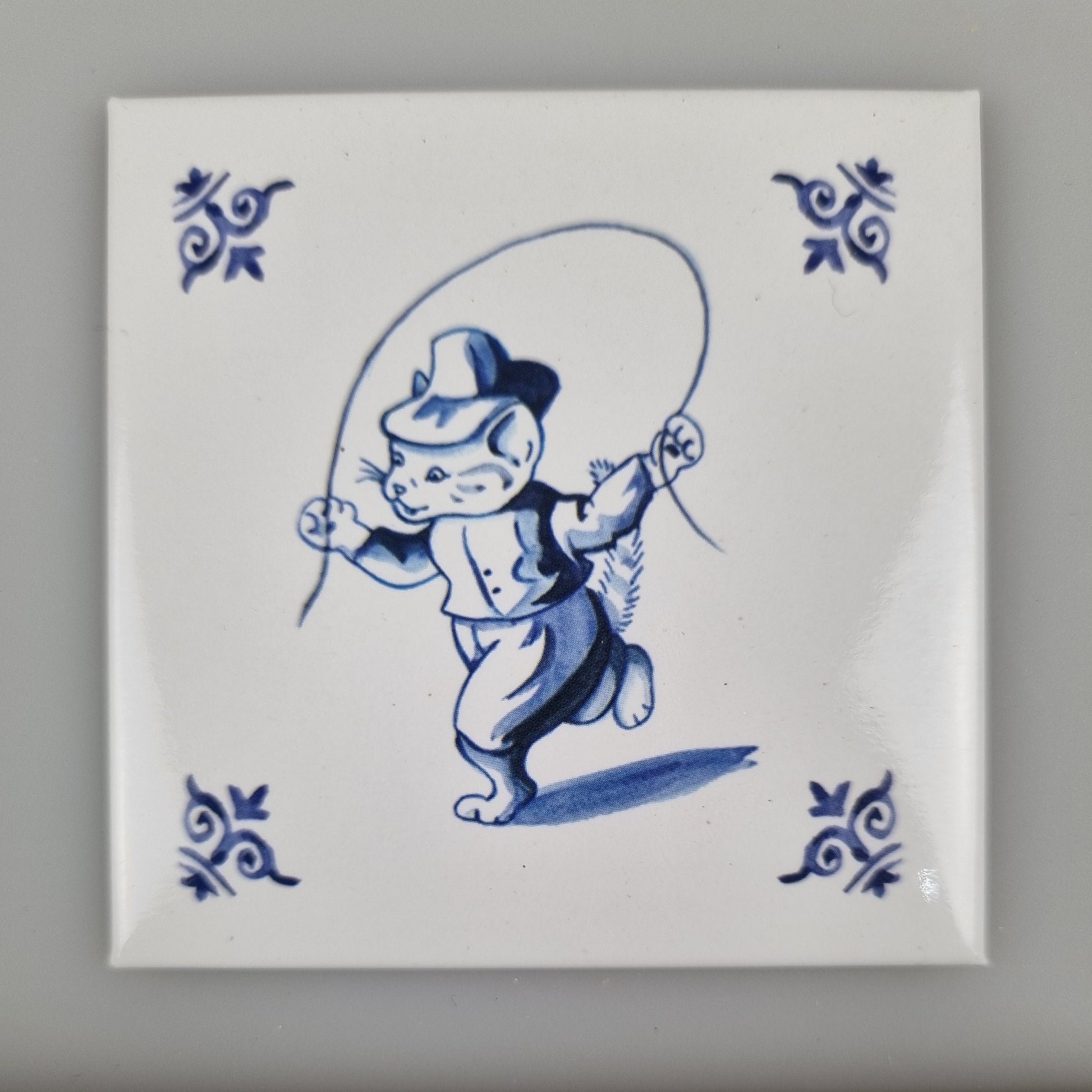 Koelkastmagneet - Kat (delfsblauw) - Touwtje Springen