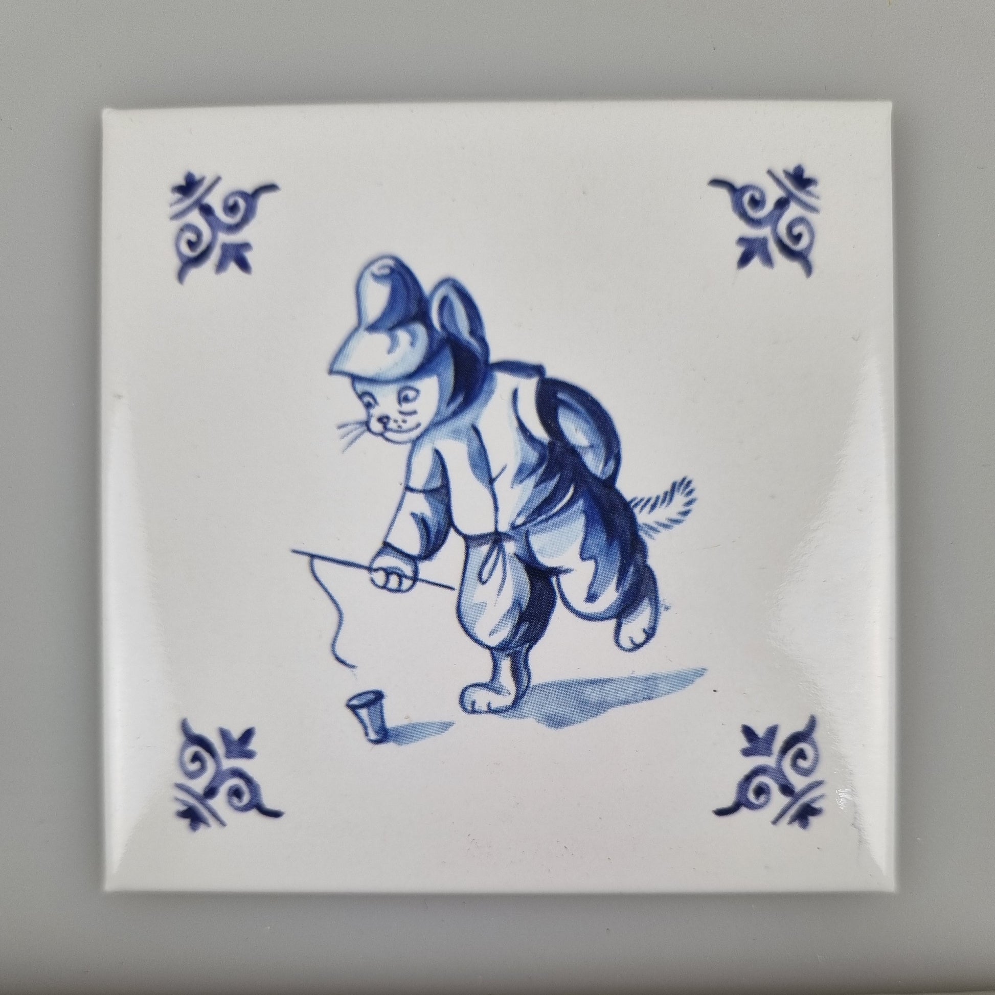 Koelkastmagneet - Kat (delfsblauw) - Spelen met een tol